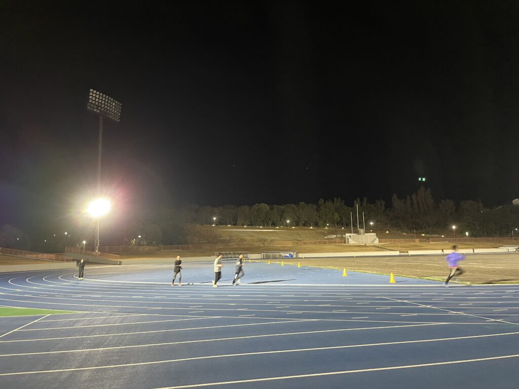 少し寒さがマシだったので、30↑30mの加速走を入れました。この時期にしては、上々のタイムだったと思います!(秋田談)