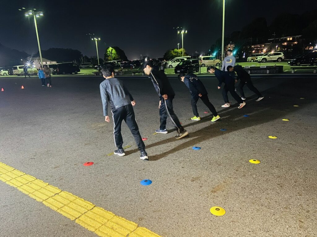 冬期トレーニングらしく、シャトルスプリントをしました。技術的な要素も、体力的な要素も含ませた内容です。ゆくゆくは、楽にこなせるようになりましょう!(秋田談)