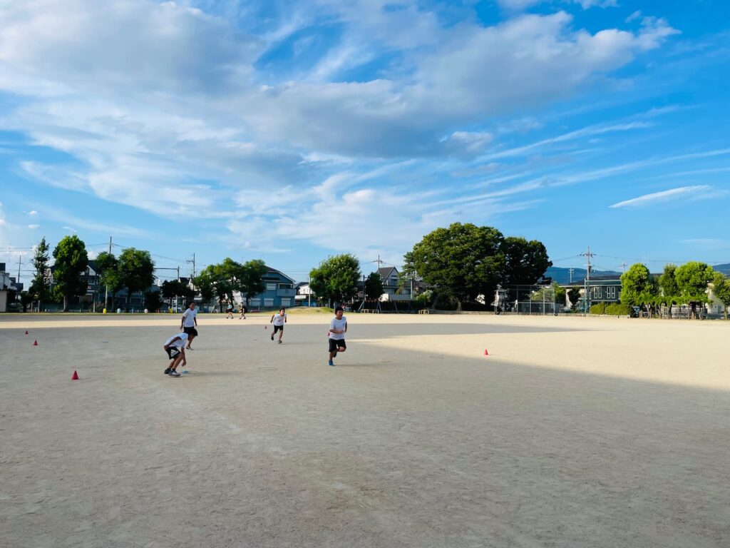今日は久しぶりにエンドレスリレーをしました。半周を2本いっただけでしたが、人数が少なかったのと暑いのもあってみんな疲れた様子でしたね。いい練習になりました。