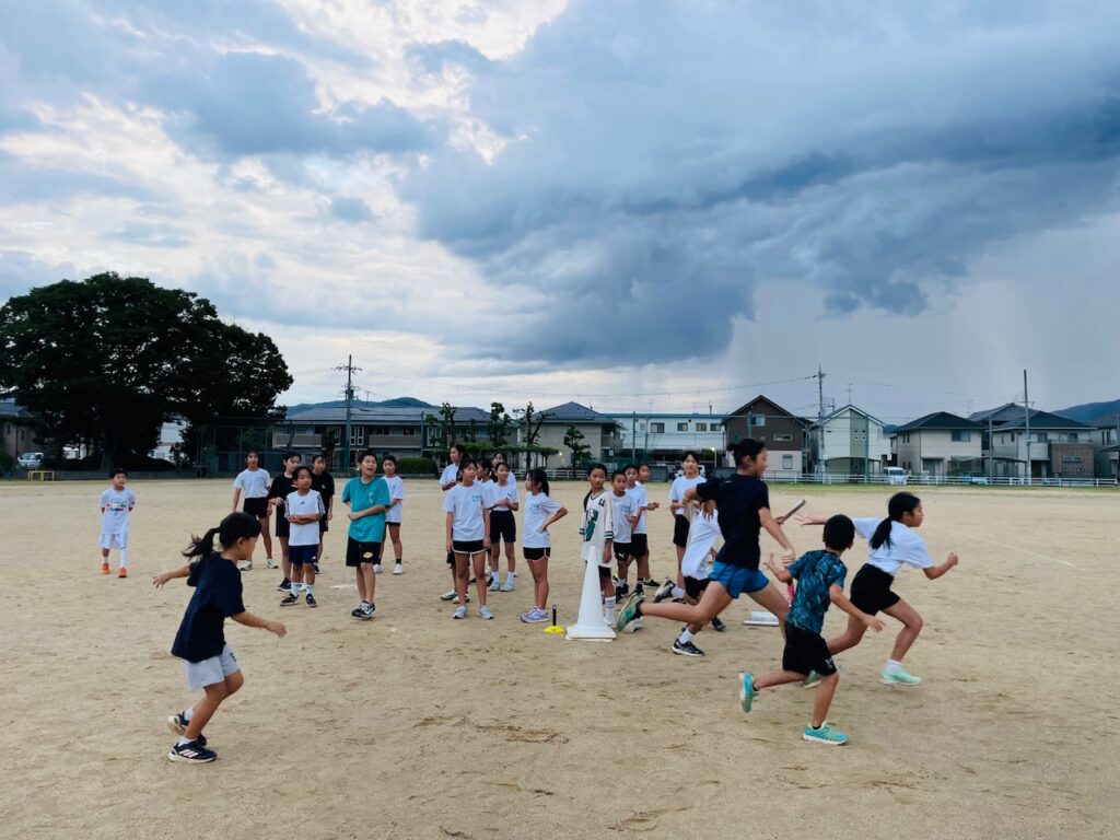 途中雨で中断もしましたが、なんとか最後まで活動できました。今日から退会に向けてリレーの練習も始めました。いい記録が出せるようにこだわってやっていきましょう。